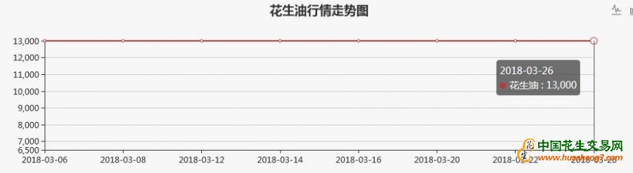 2018年3月3日--26日,山東花生油價格平穩(wěn),出廠報價為:13000元/噸。