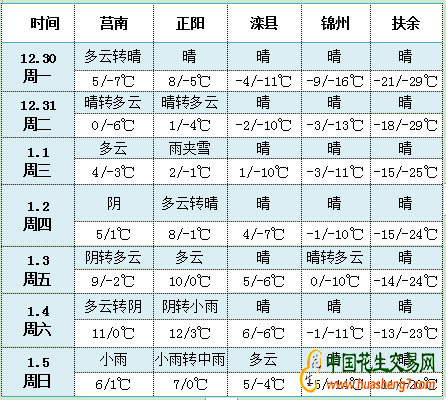 中國花生交易網(wǎng)(www.hongjidian.com)訊 未來10天(12月30日至2020年1月8日),西藏南部、四川盆地東部、云貴、黃淮、江漢及江南西北部等地累計降水量有10~30毫米,云南西部、重慶北部及湖北西南部等地的部分地區(qū)有50~80毫米;上述大部地區(qū)降水量較常年同期偏多4~8成,局部偏多1倍以上。西北地區(qū)東部、華北中部及東北地區(qū)南部累計降水量3~10毫米,西北地區(qū)東南部、華北南部的部分地區(qū)有20~30毫米。