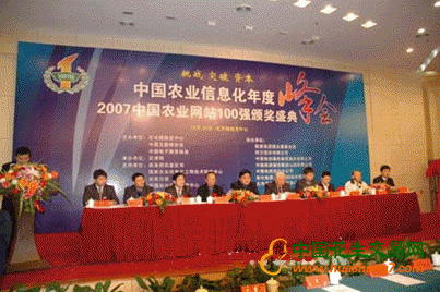 由農業部信息中心、中國互聯網協會、中國電子商務協會共同主辦,中國農業信息化年度峰會暨2007中國農業網站100強頒獎盛典12月20日在北京梅地亞中心隆重召開。