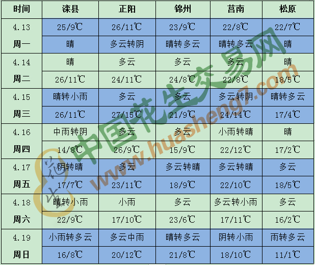 中國花生交易網(wǎng)(www.hongjidian.com)訊 未來10天(4月13-22日),江淮、江南、華南北部及貴州東部、四川盆地東部等地累計(jì)降水量有20~40毫米,局地50~90毫米,江南東部、華南東部和南部累計(jì)雨量較常年同期偏少,西南地區(qū)東部、江南西部累計(jì)雨量較常年同期偏多3~7成;主要降水將出現(xiàn)在17-18日、19-21日。此外,新疆北部、西北地區(qū)東部、華北、黃淮及東北地區(qū)有3~8毫米降水,局地10~30毫米,華北東部累計(jì)雨量較常年同期偏多4~8成。